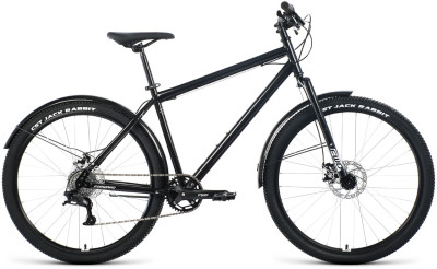 Forward Sporting 27.5 X D Courier – горный велосипед, рассчитанный на курьеров. Его стальная рама имеет большой запас прочности, алюминиевые двустеночные обода выдержат езду по ухабистыми дорогам. Жесткая вилка предельно надежна. Дисковые механические тормоза четко и быстро остановят байк на любой дороге. Трансмиссия на 8 скоростей. В комплекте – полноразмерные крылья для максимальной защиты от грязи. Неприхотливый байк.